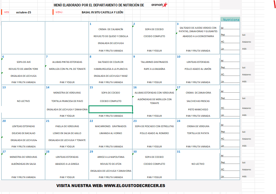 Septiembre : 13,15h. a 14,00 h. Octubre a Mayo: 14,15h. a 15,00h Junio : 13,15 a 14,00 h.  Los alumnos/as  de transporte escolar se marcharán a sus casas, aproximadamente a las 15,00 h. exceptuando los que se queden a los talleres que quedarán bajo la supervisión  de las cuidadoras de comedor escolar hasta el comienzo de los mismos a las 16:15 h. El Comedor Escolar, es un servicio que ofrece el centro, no solo a los niños/as transportado, si no también a aquellos que lo quieran utilizar y a los cuales se les exigirán unos hábitos de respeto y la aceptación de las normas que figuran en nuestro R.R.I